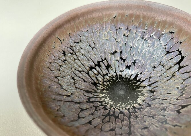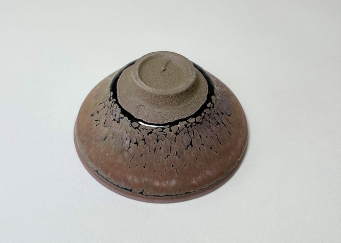 高台の削りは本物の、天目茶碗に劣らぬ端整仕上げ。 |