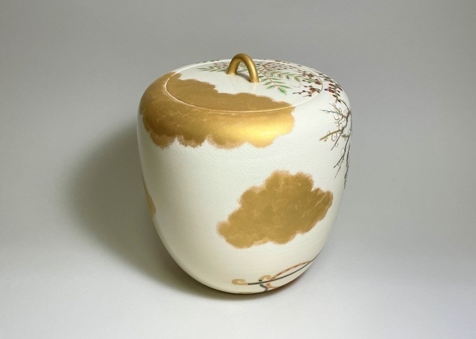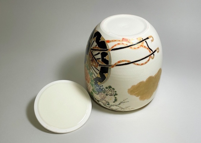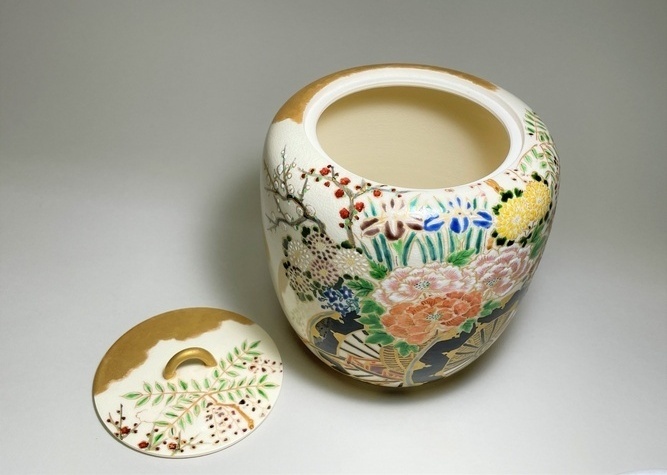 > 水指 二代 蔭山良斎作 色絵花車(いろえはなぐるま)